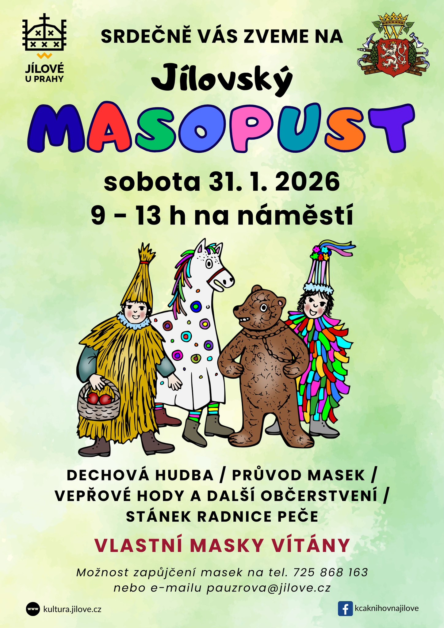Zveme Vás na tradiční Jílovský masopust plný barevných masek, hudby, tance a dobré nálady.